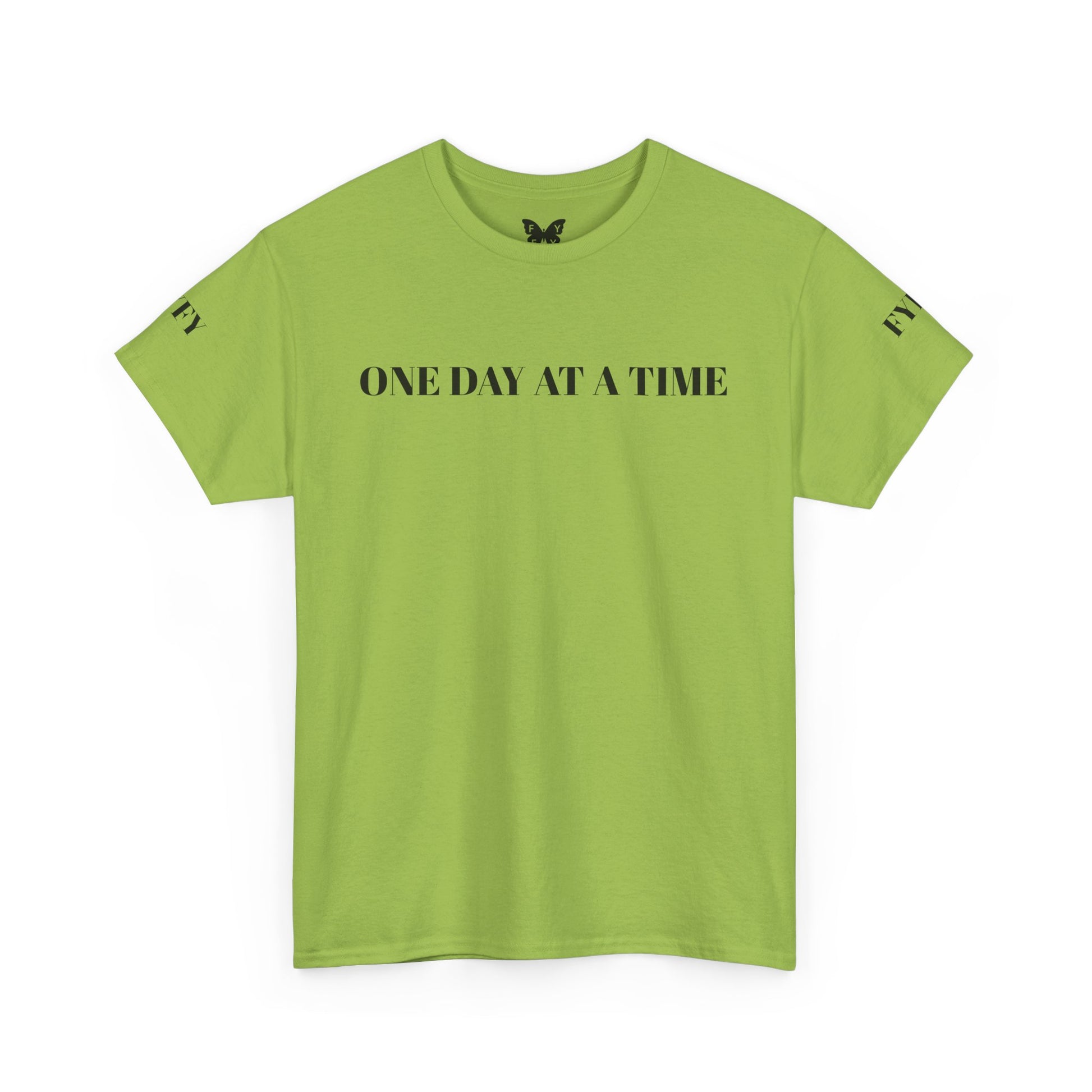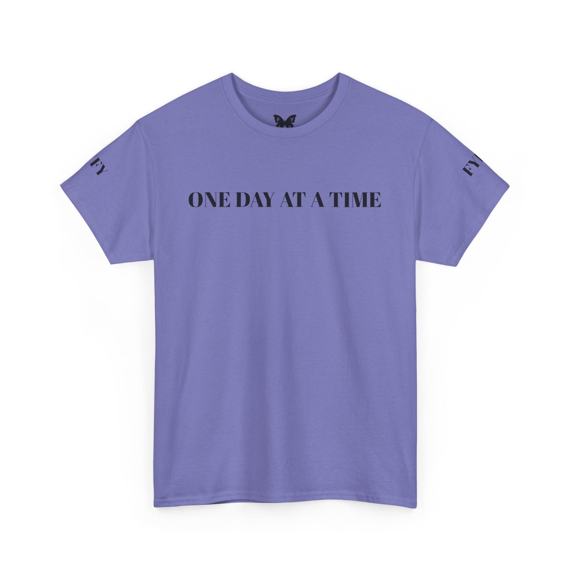 Whether you’re looking for a gift for a loved one or a personal treat, this shirt is versatile enough for all who seek comfort without compromising on flair. It's a thoughtful present for birthdays, anniversaries, or simply to spread positivity, especially with the encouraging message it carries. Celebrate life’s moments, big or small, wearing this tee that embodies a calm and reassuring vibe of "One Day at a Time." Perfect for adults seeking easy-going, motivational apparel to uplift their everyday style.